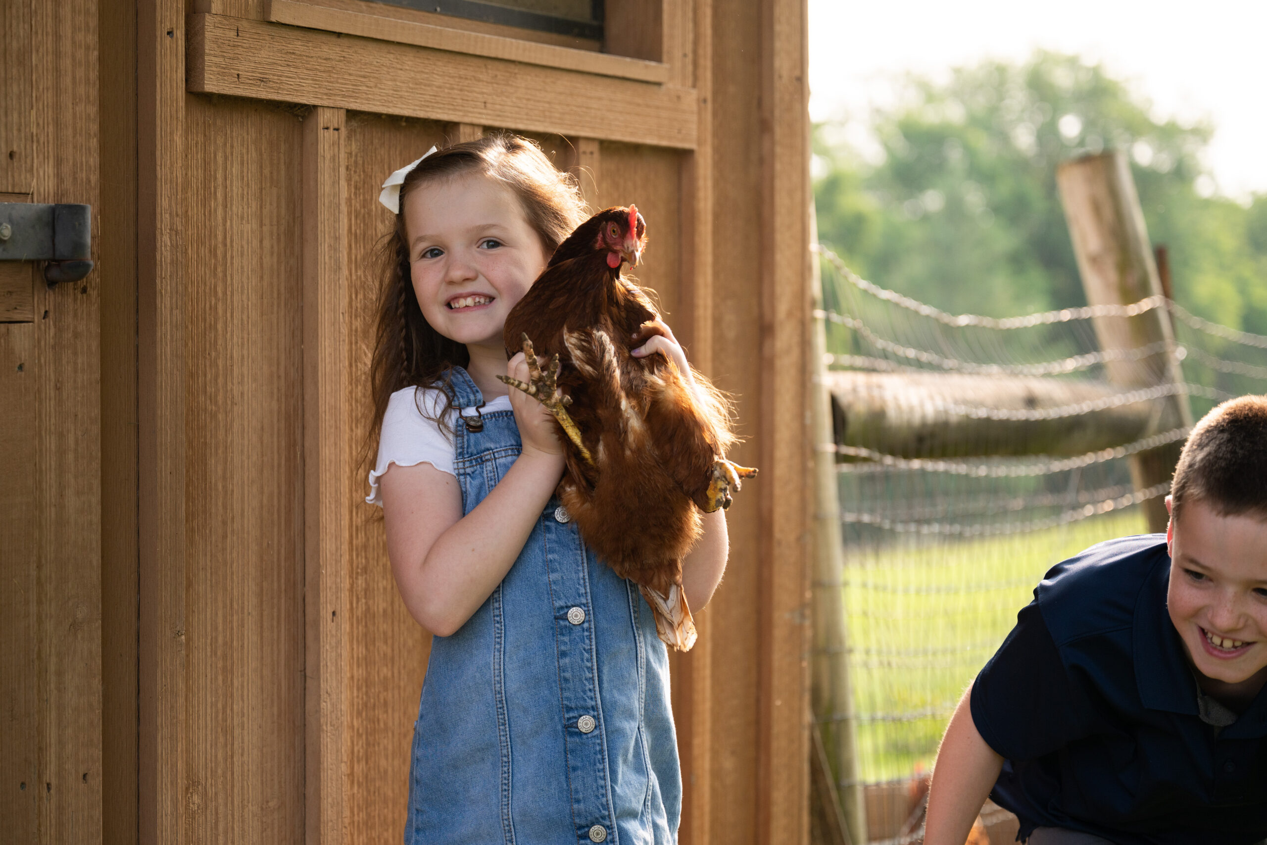 On our idyllic farmette, you’ll encounter a delightful assortment of animals that enrich the experience for guests of all ages. Our Nigerian Dwarf goats, known for their playful personality and petite size, are a favorite among visitors, especially during the spring when they have adorable babies. Each goat has its own unique name, making it fun for Steve to introduce them to children before they feed and walk them. You’ll find our lovely flock of chickens, including the well-known Rhode Island Red hens, which lay beautiful brown eggs—perfect for a farm-fresh breakfast. Additionally, we have one Mama Cat, who typically has a litter of playful kittens every spring, providing endless entertainment. Our animals create memorable moments for our guests.
